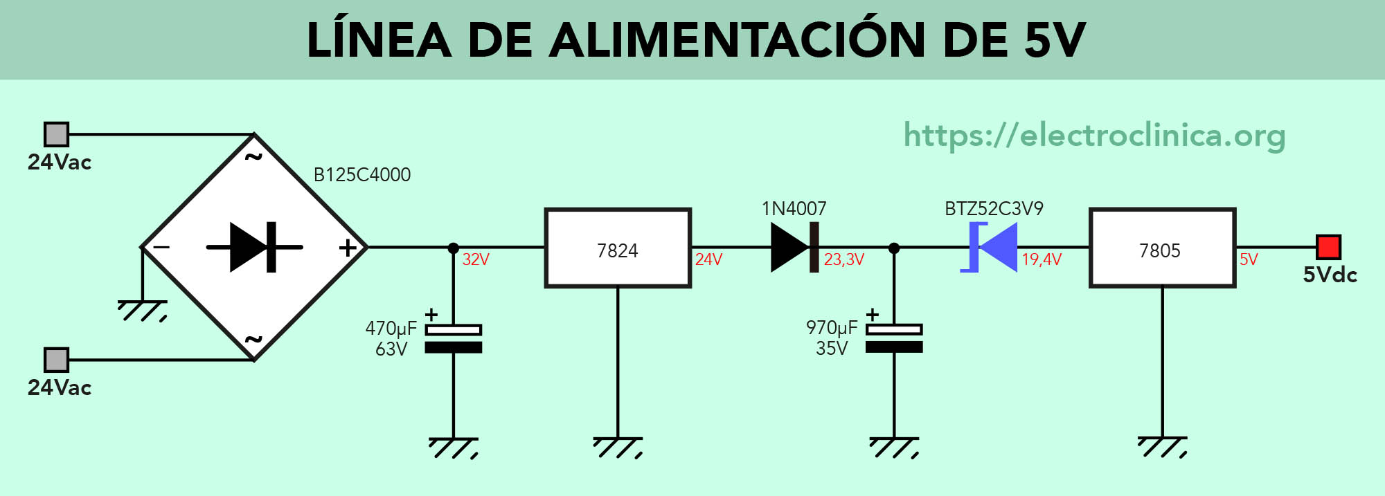 Esquema de la línea de alimentación de 5V (Click para agrandar)