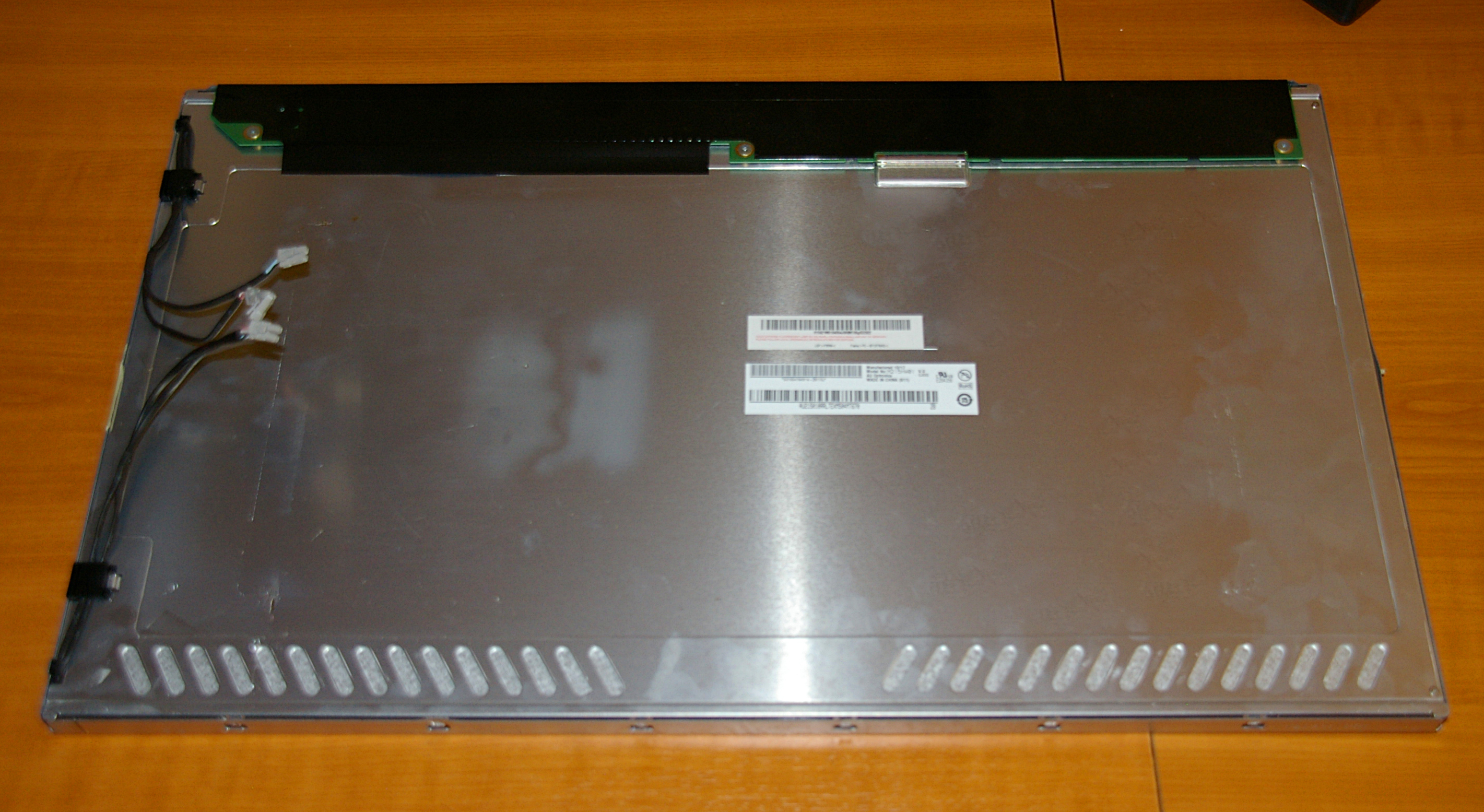 Este televisor estaba en un soporte de pared que se desprendió causando su caída. Tras el incidente el televisor queda abierto con parte de los componentes fuera del receptáculo.