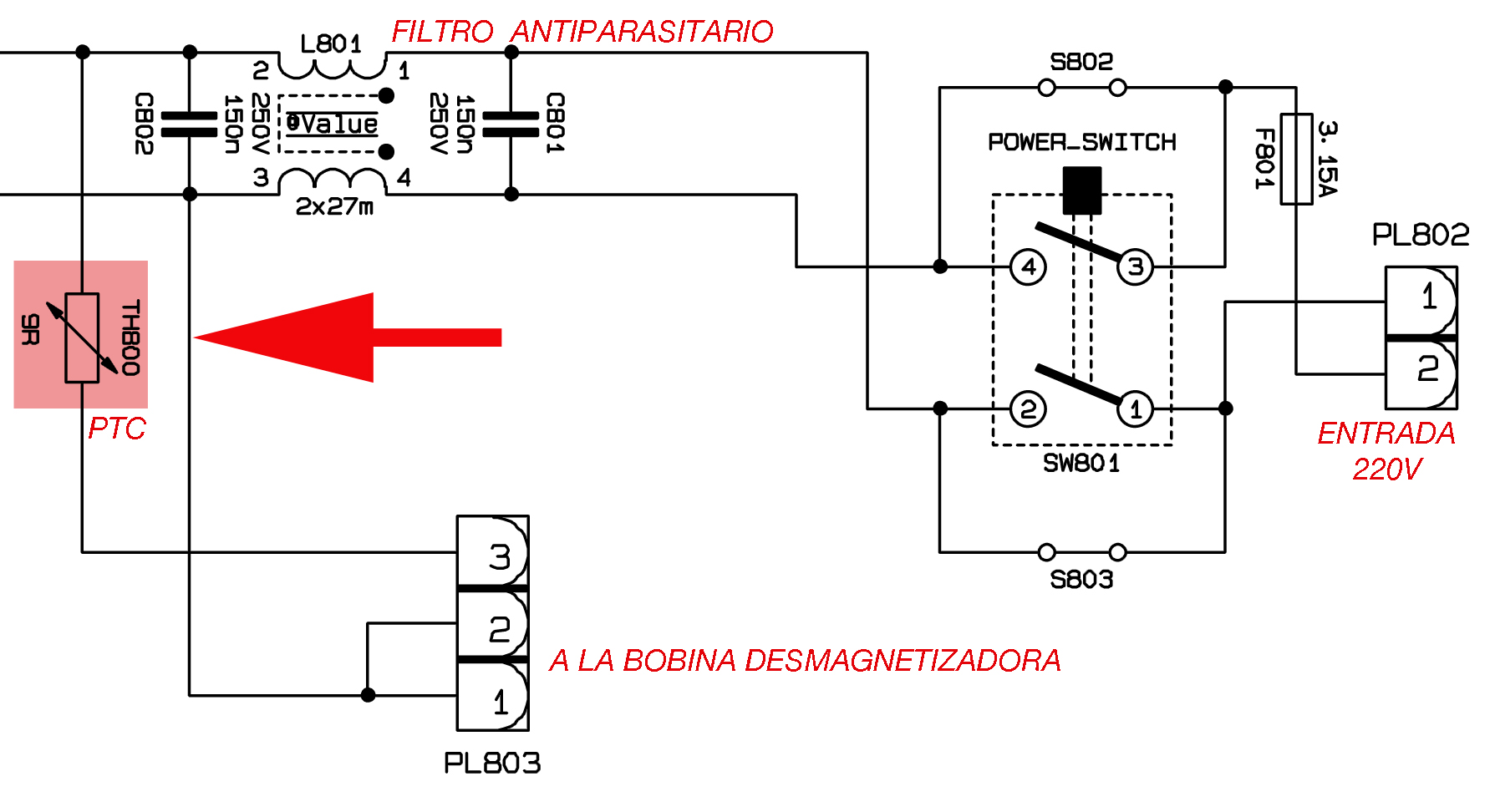 Mido tensiones en la entrada, tras el filtro antiparasitario y obtengo 230V en alterna. Ahora mido tras el puente Graetz y obtengo 245V en contínua. En cambio, tras una resistencia fusible desaparece la tensión de alimentación. No hay duda, esa resistencia fusible está cortada.