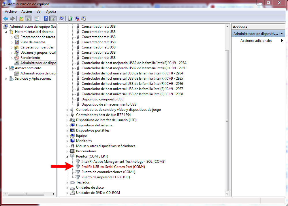 Ahora tengo que saber qué puerto USB voy a usar para reprogramar la placa del disco duro. Para identificarlo instalo los drivers del conversor USB-UART, lo conecto a un puerto USB del PC y observo el administrador de dispositivos del Windows.