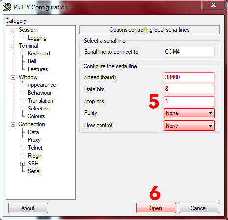 Pincho sobre «Serial» para acceder a los parámetros de comunicación.
