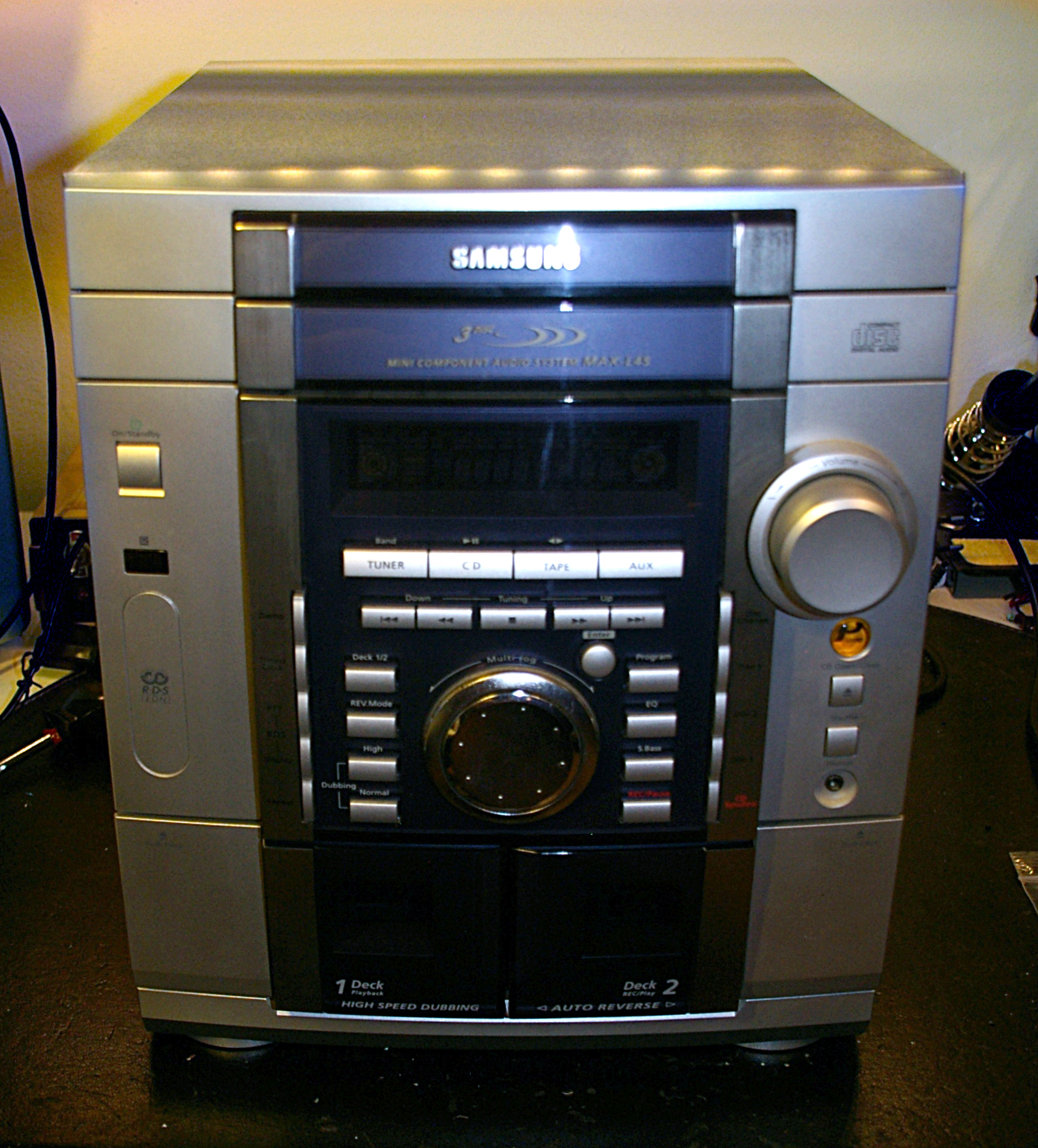 Este equipo compacto consta de sintonizador de radio, doble pletina, bandeja triple de CD y amplificador de 40W por canal.