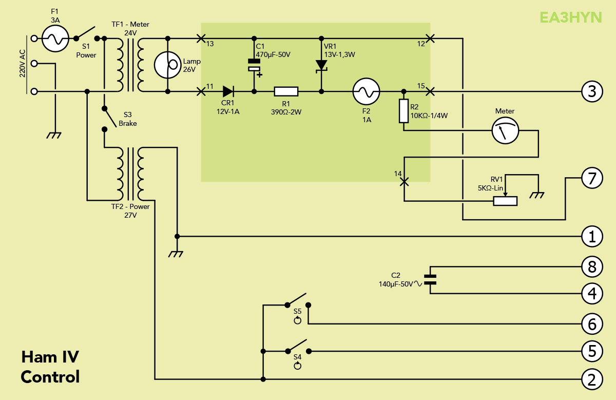 Se trata de una doble fuente, una que alimenta al medidor y otra que alimenta el solenoide que desactiva el freno y el motor que hace girar la antena en sentido horario o antihorario.
