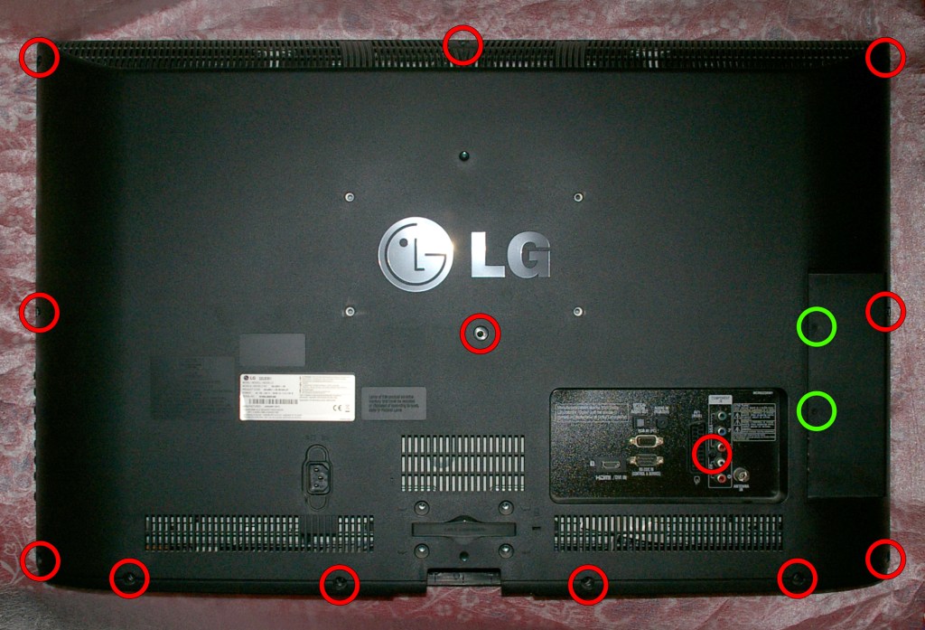 Televisor LCD LG modelo 32LD351 que se ha quedado sin audio. El conector de auriculares no está presente.