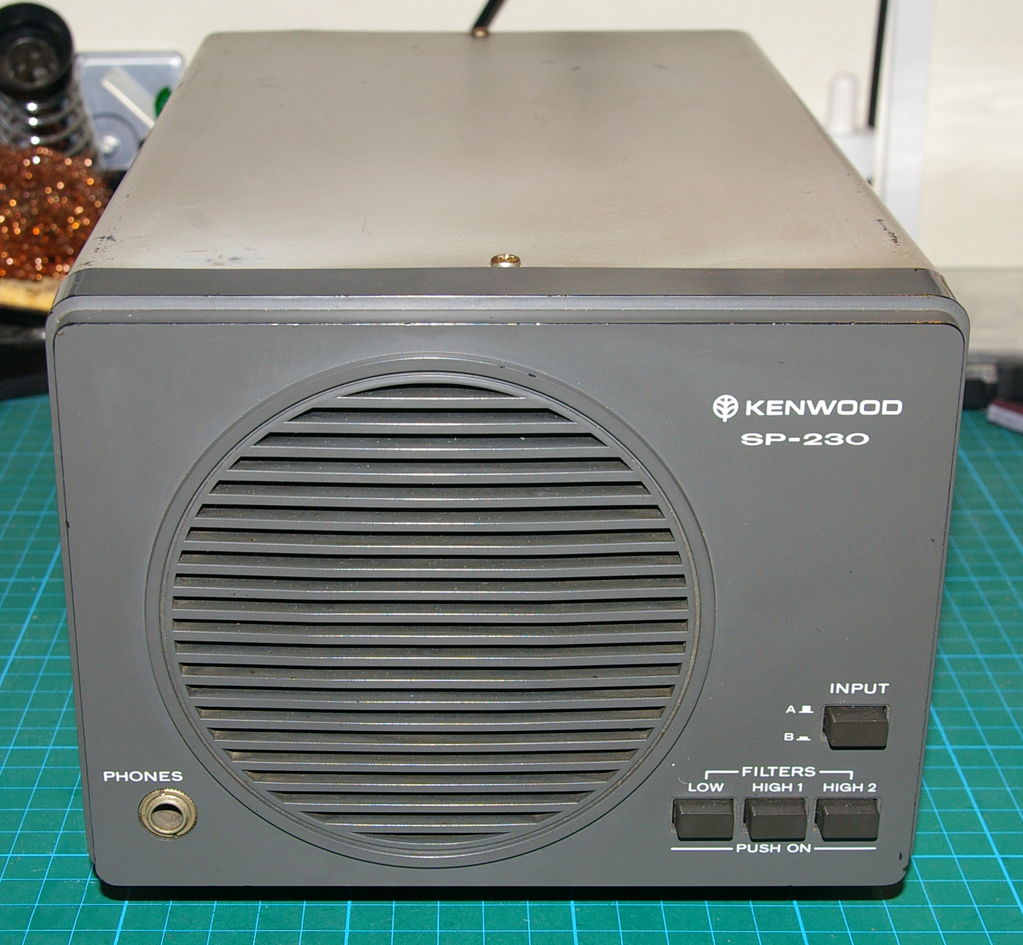 El SP-230 de Kenwood es un altavoz optimizado para radioescucha que mediante su cuádruple filtro de audio permite atenuar algunos ruidos de fondo para recuperar la inteligibilidad de la voz de los radioaficionados corresponsales. En este caso este equipo fue modificado y no era posible escuchar el audio usando la conexión que llevaba.