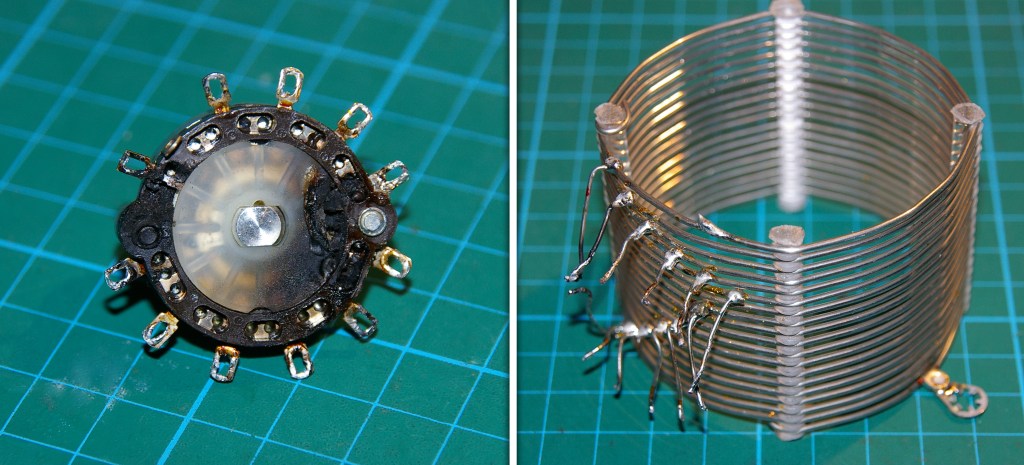 Para instalar el recambio uso un truco: monto la bobina y el nuevo selector rotatorio sin soldar. Una vez montados reconecto los terminales accesibles y los sueldo. Finalmente vuelvo a sacar el conjunto, sueldo el resto de terminales y lo vuelvo a montar ya acabado.
