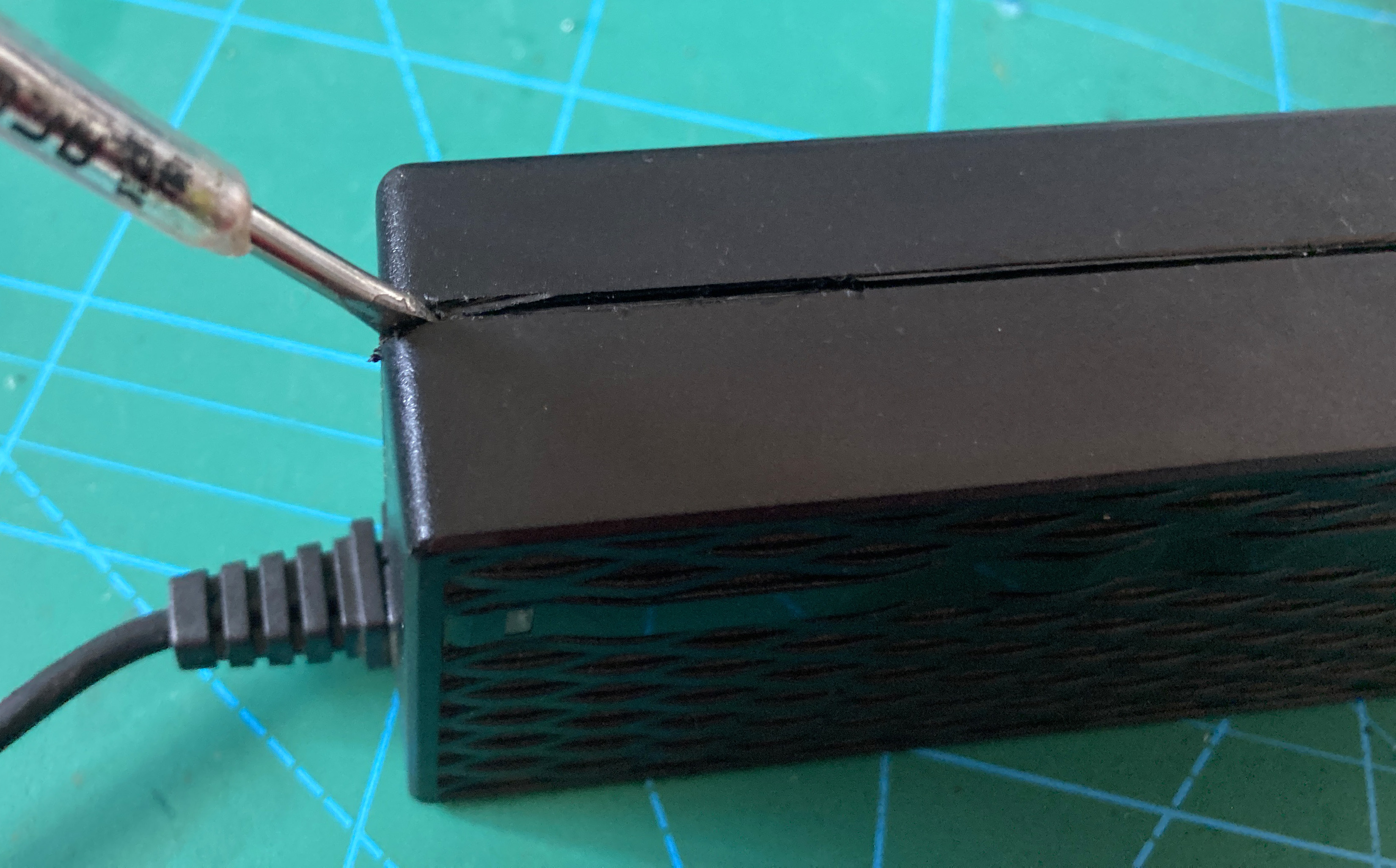 Nota: Este método de apertura es válido para cualquier fuente de alimentación o cargador que no tenga tornillos.
