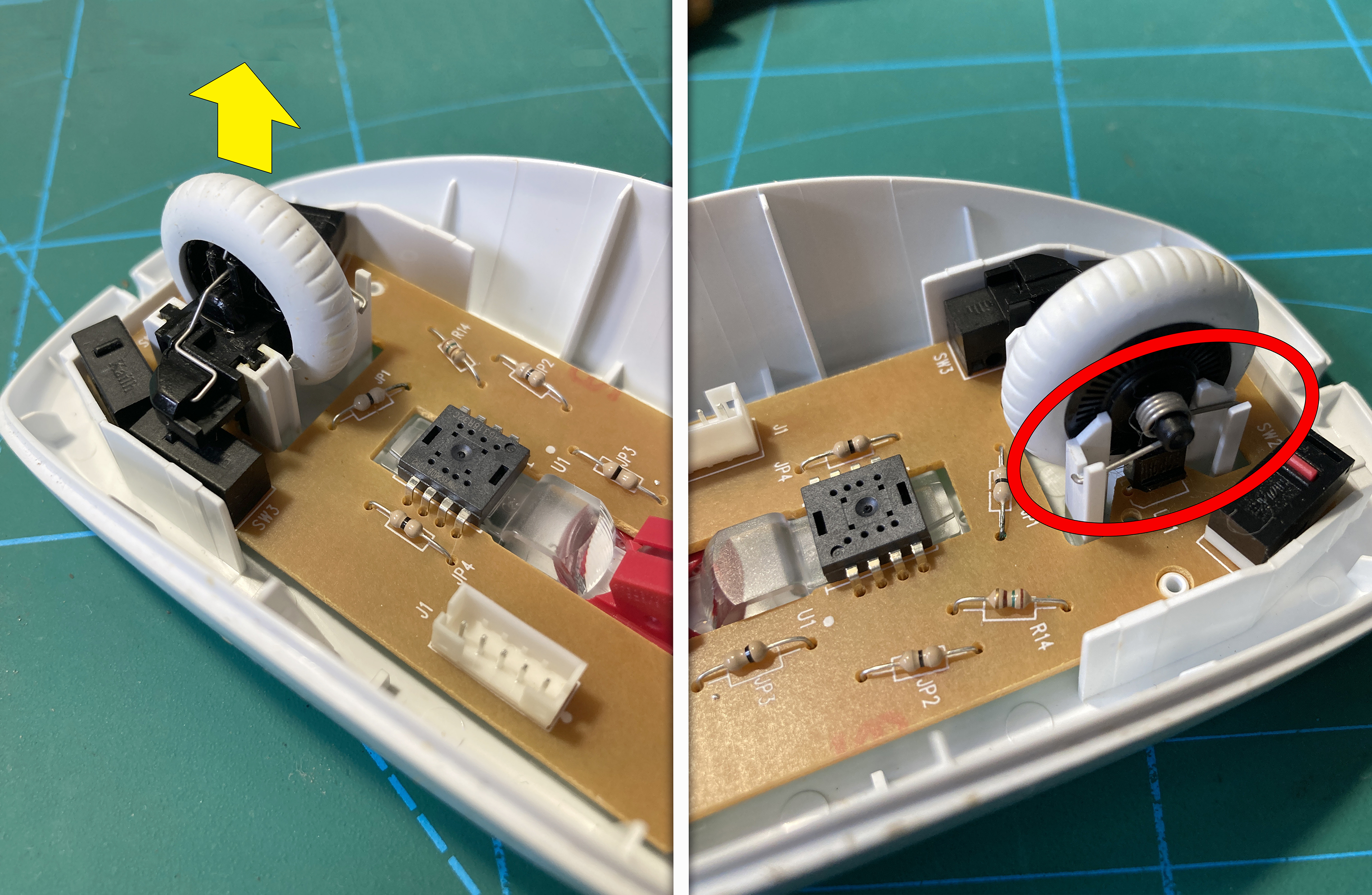 Quitando los 4 tornillos posteriores del receptor REC-401 puedo ver el interior. Paso dos tornillos, que se ven indicados con sendas flechas rojas en la siguiente imagen, para poderlo anclar a una base. Luego lo vuelvo a cerrar. El cable negro que hay suelto en la zona superior es la antena.