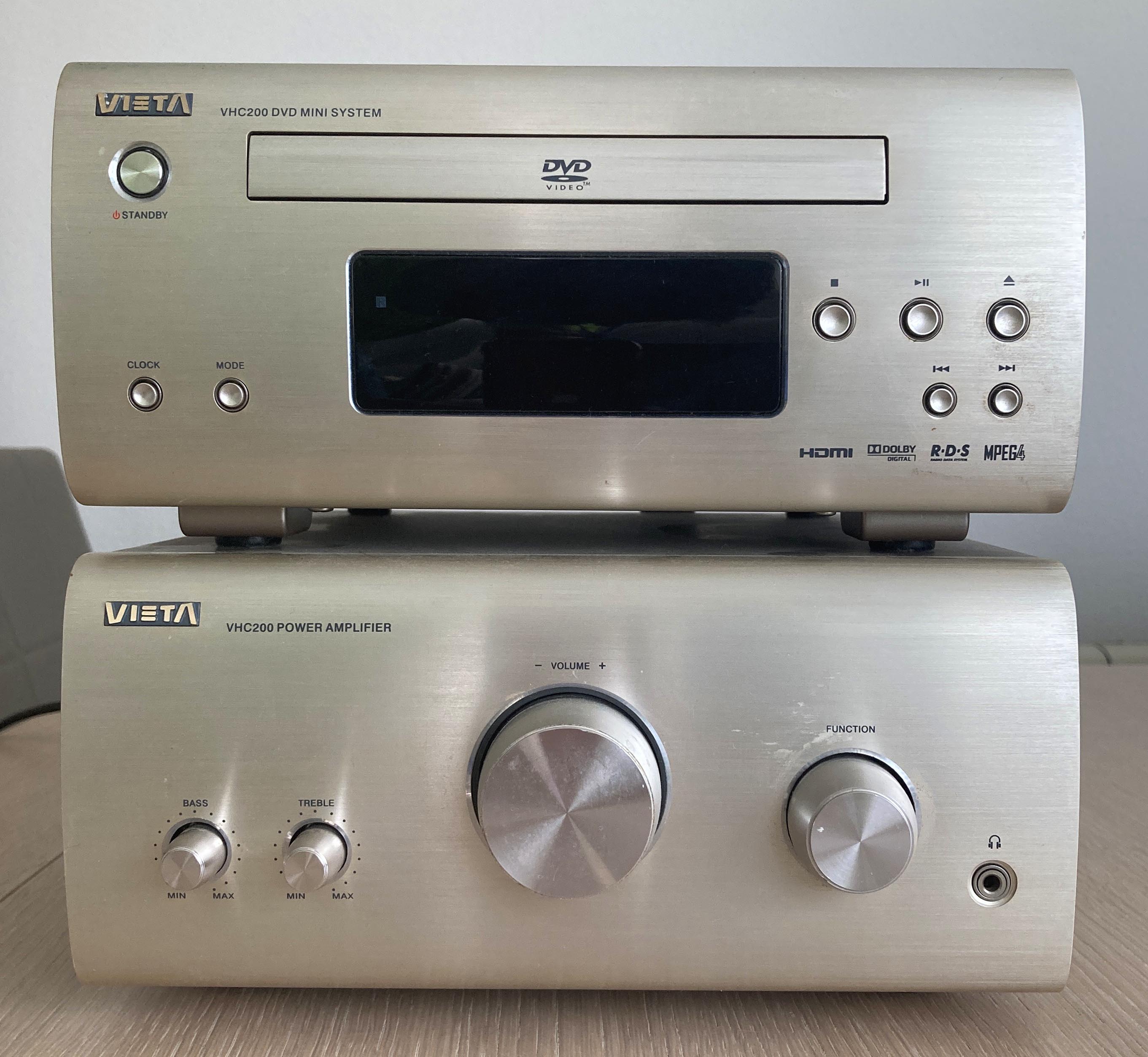Equipo Hifi Vieta VHC200 que presenta varios problemas. Por una parte la botonera genera órdenes totalmente aleatorias: por ejemplo al pulsar Stop genera un Play o un Eject, al pulsar Avance genera un Stop o un Retroceso, etc. Nunca se obtienen los mismos resultados. A veces incluso no funciona ninguna tecla. Por otra parte el control de volumen siempre produce aumento del mismo, independientemente del sentido de giro del mando. Igualmente, el selector de función también funciona erráticamente. Ambos controles están comandados por sendos encoders.