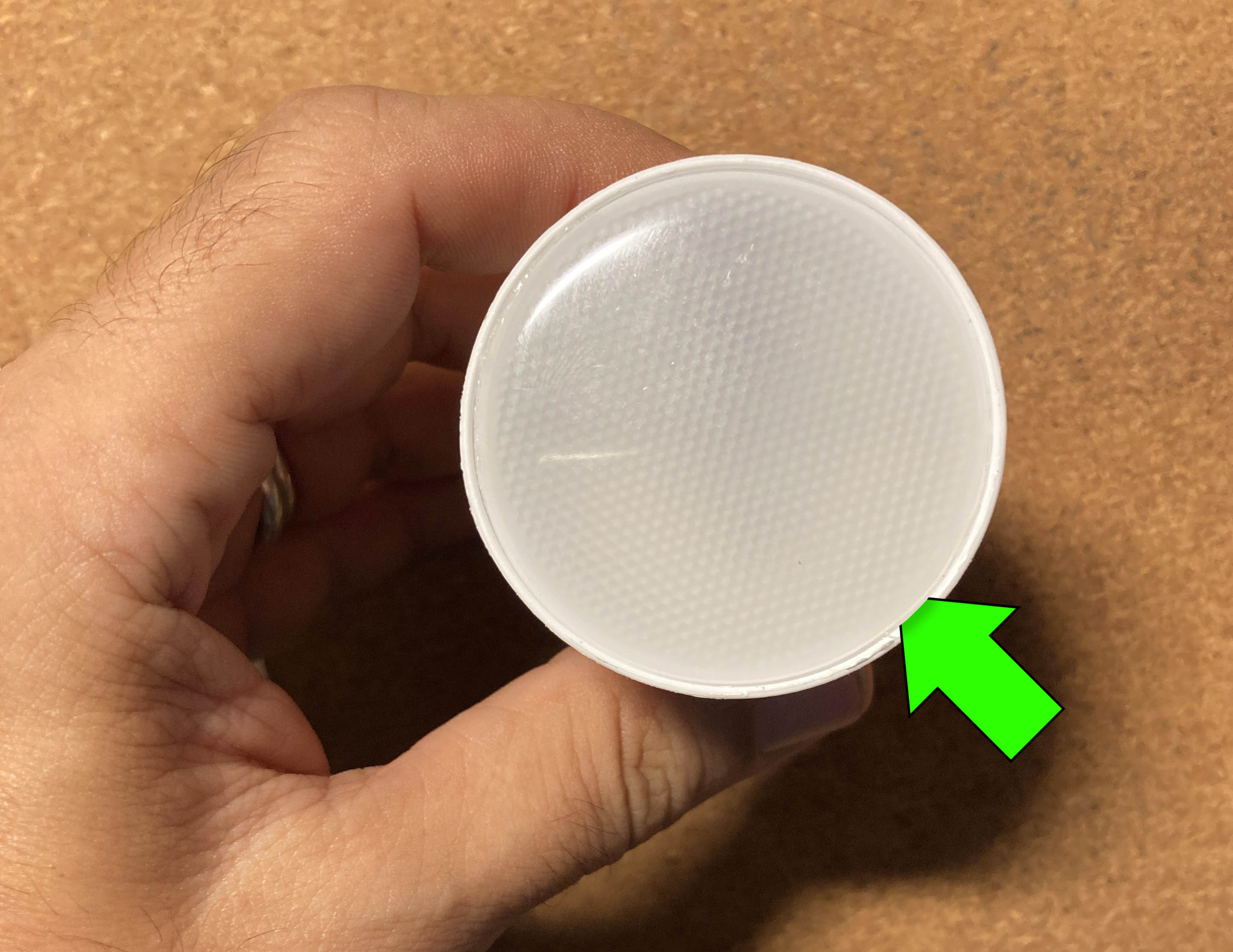 Bombilla led con base tipo GU10 cuya luz baja y sube de intensidad de manera aleatoria hasta que, estando caliente, se queda en baja intensidad. Otros síntomas similares incluyen parpadeos y variaciones de potencia lumínica. Voy a intentar darle solución para no generar residuos electrónicos prematuros.