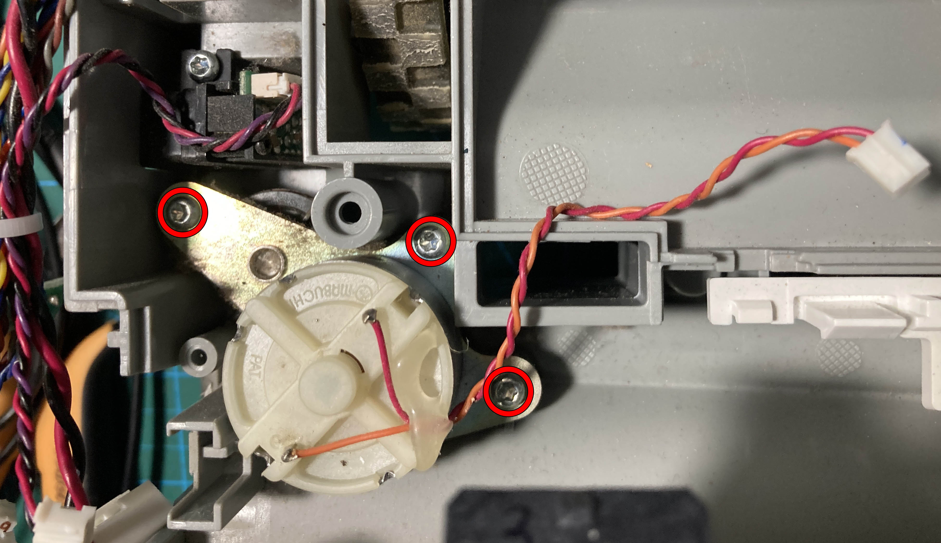 Para extraer la fuente de alimentación tengo que quitar los 4 tornillos que se indican en la imagen siguiente. El clip central se salva girando ligeramente la placa al sacarla.