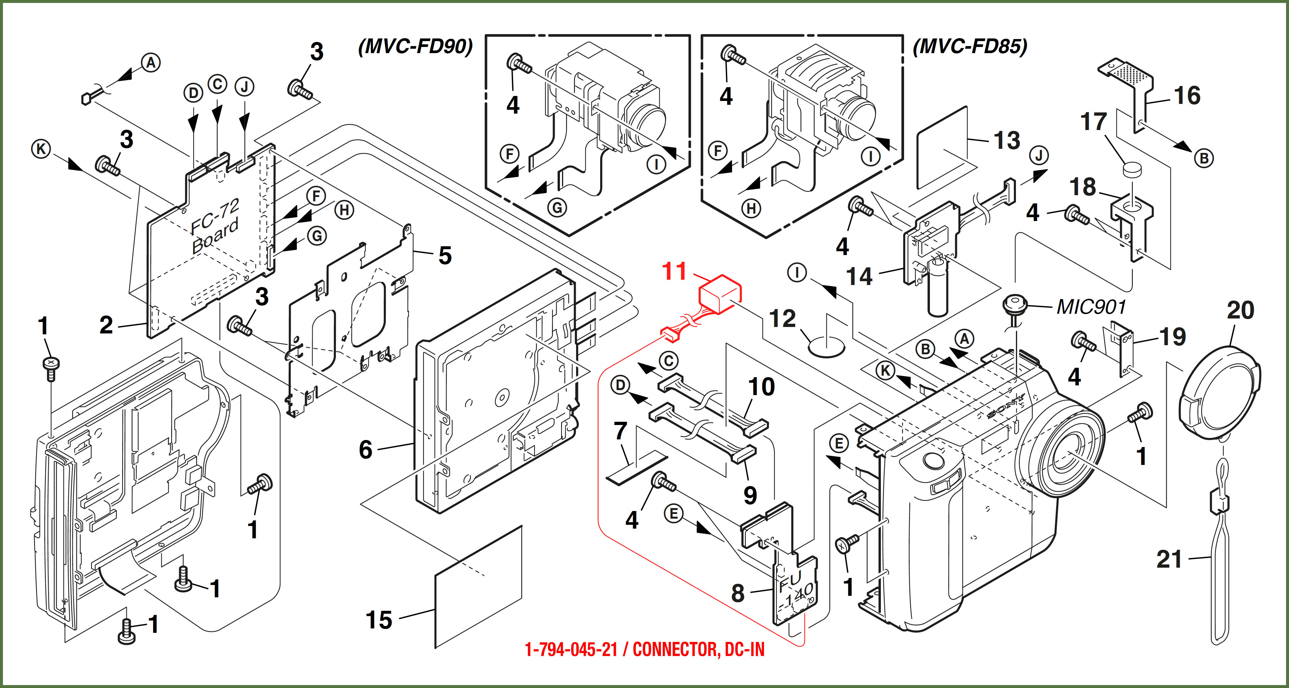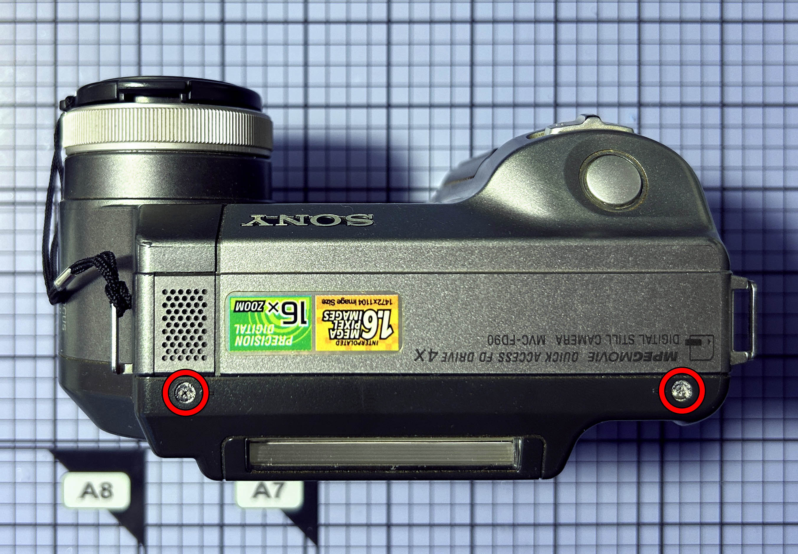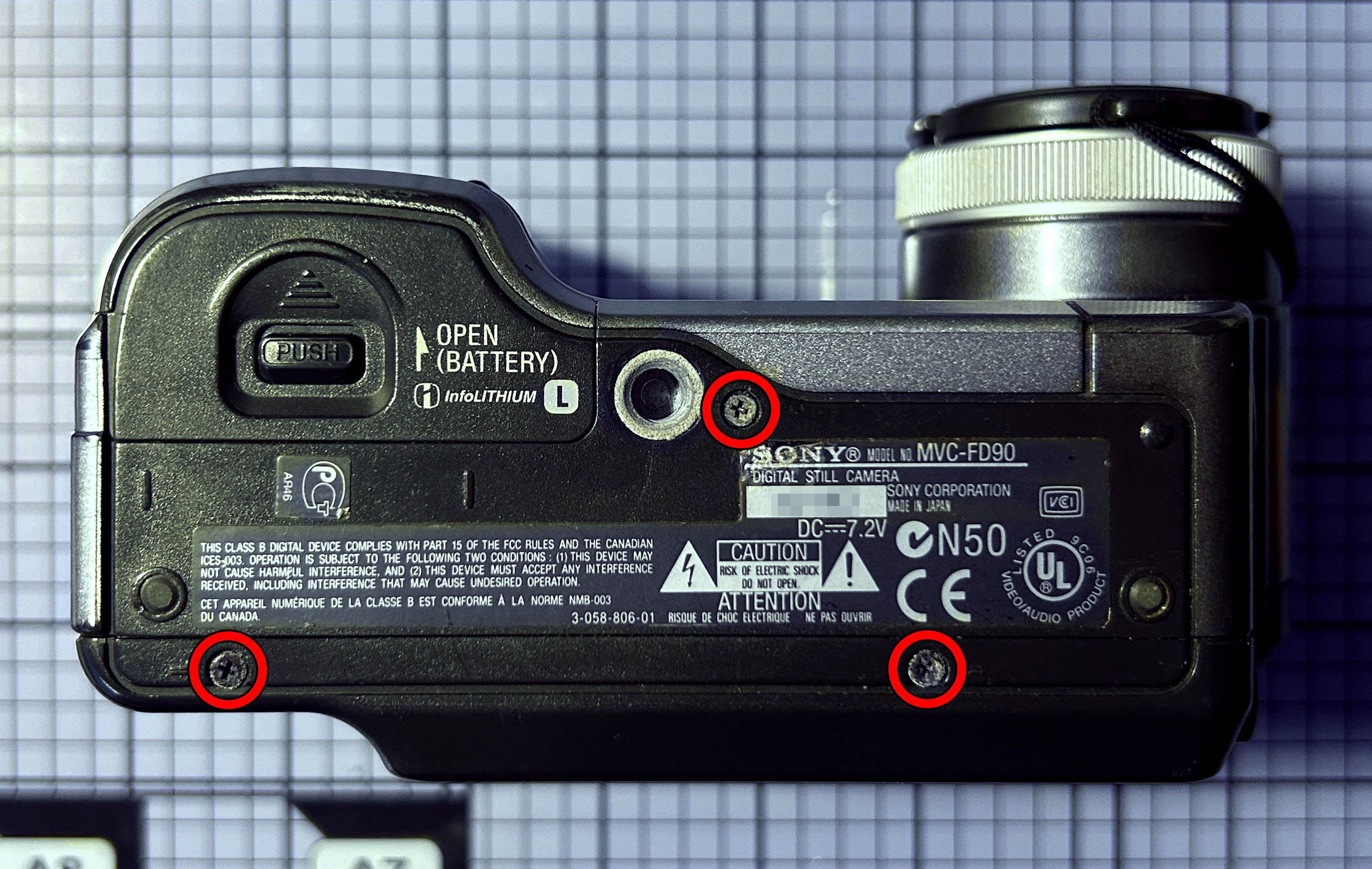 Nota: esta reparación es similar en el caso de cámaras Sony Mavica MVC-FD85.