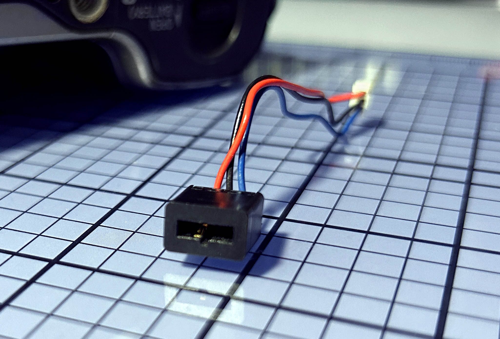 Primeramente sospecho del cable de alimentación en su parte final, donde está el conector que se enchufa a la cámara. Haciendo pruebas con un voltímetro veo que la tensión es estable, no habiendo ningún corte al mover el cable, ni en la unión con el conector ni en todo su largo. Es entonces cuando sospecho del conector DC-IN de la cámara.