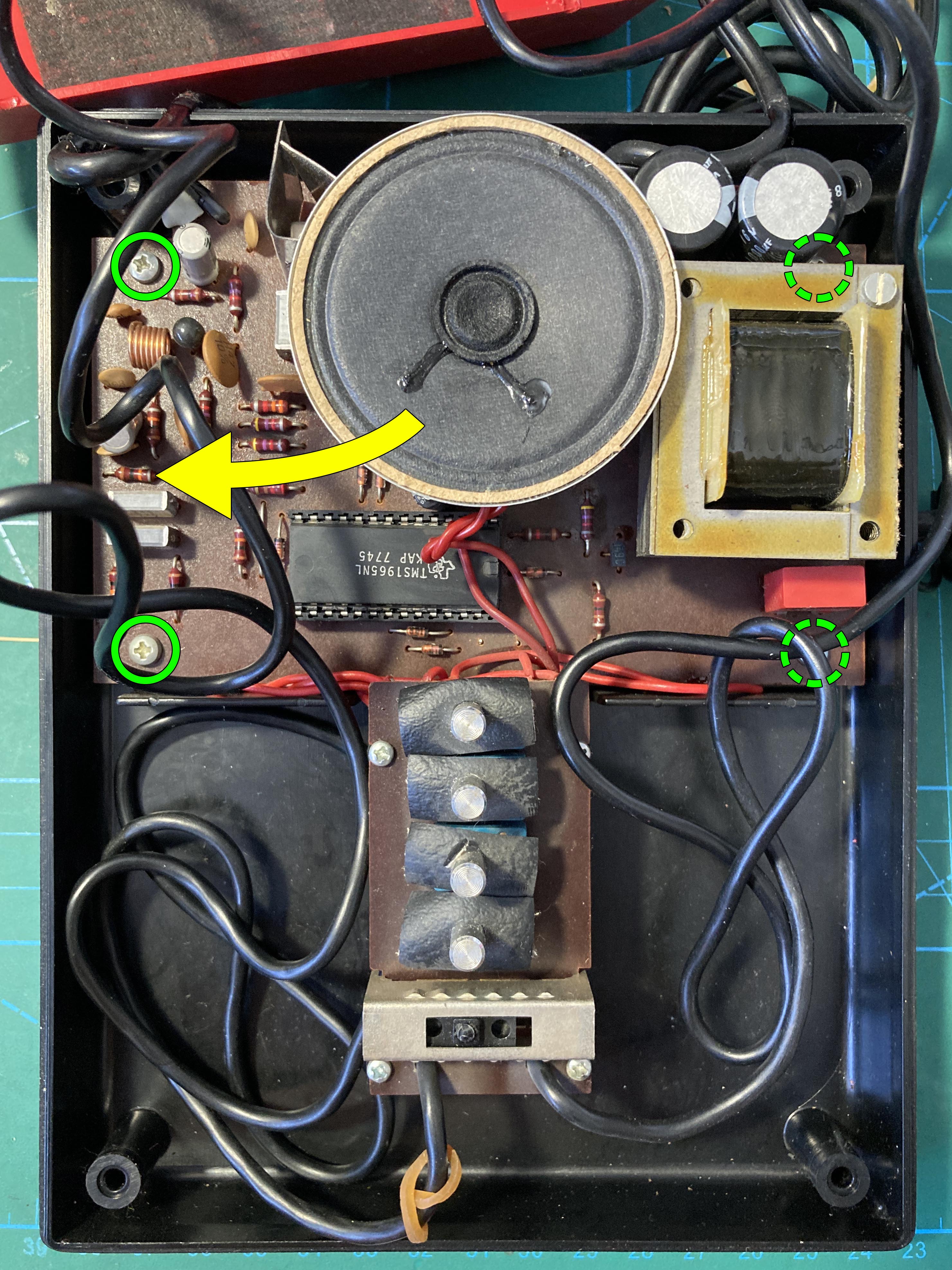 Retiro la tapa superior con la precaución de desconectar antes el altavoz. También quito los 5 tornillos de la tapa inferior, que también retiro, dejando el equipo boca abajo. Como puede verse en la siguiente imagen a la derecha está la placa IF, donde está el conector afectado.