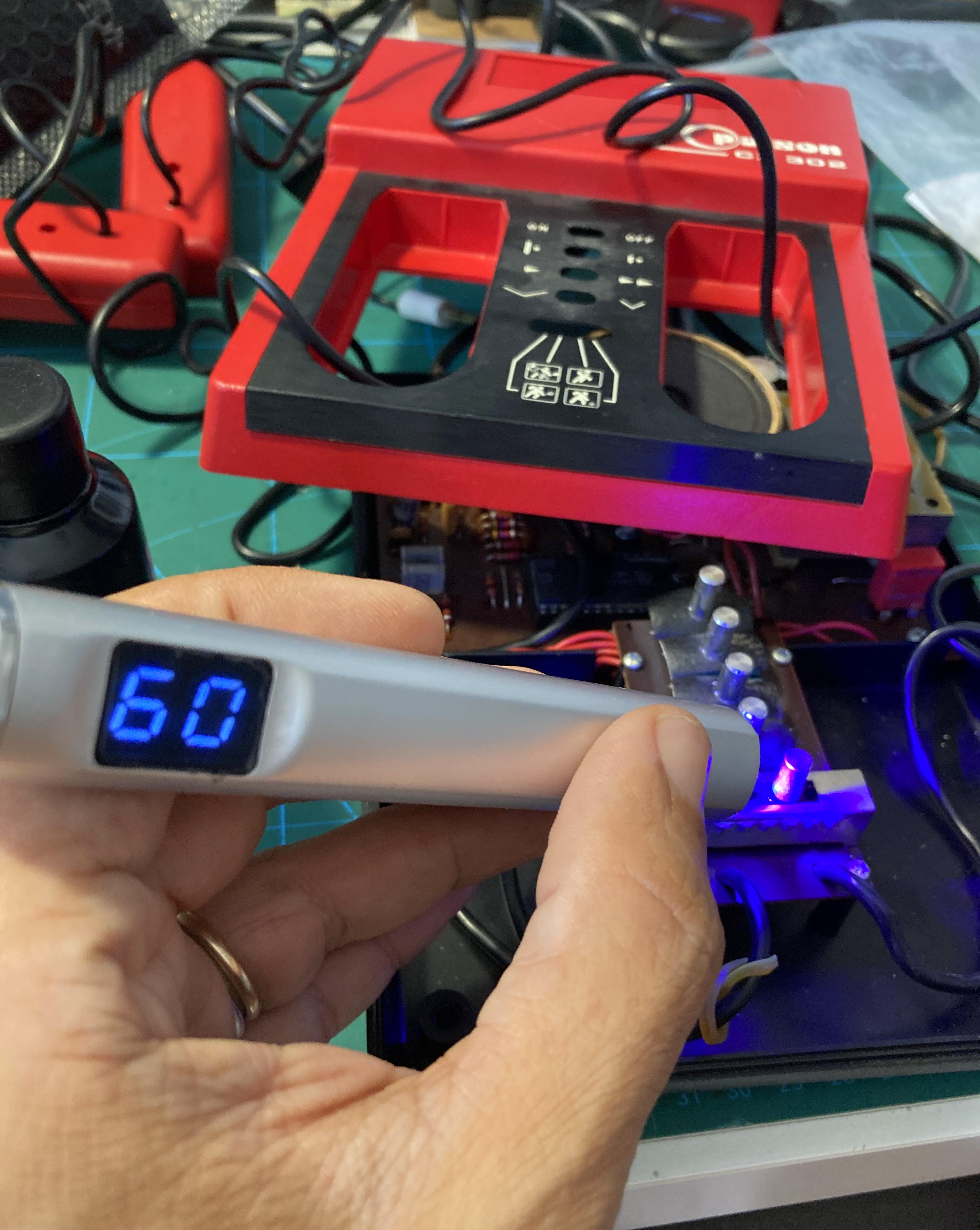 Finalmente diseño e imprimo una etiqueta para el frontal del dispositivo y añado un mando giratorio al potenciómetro. El equipo queda acabado.
