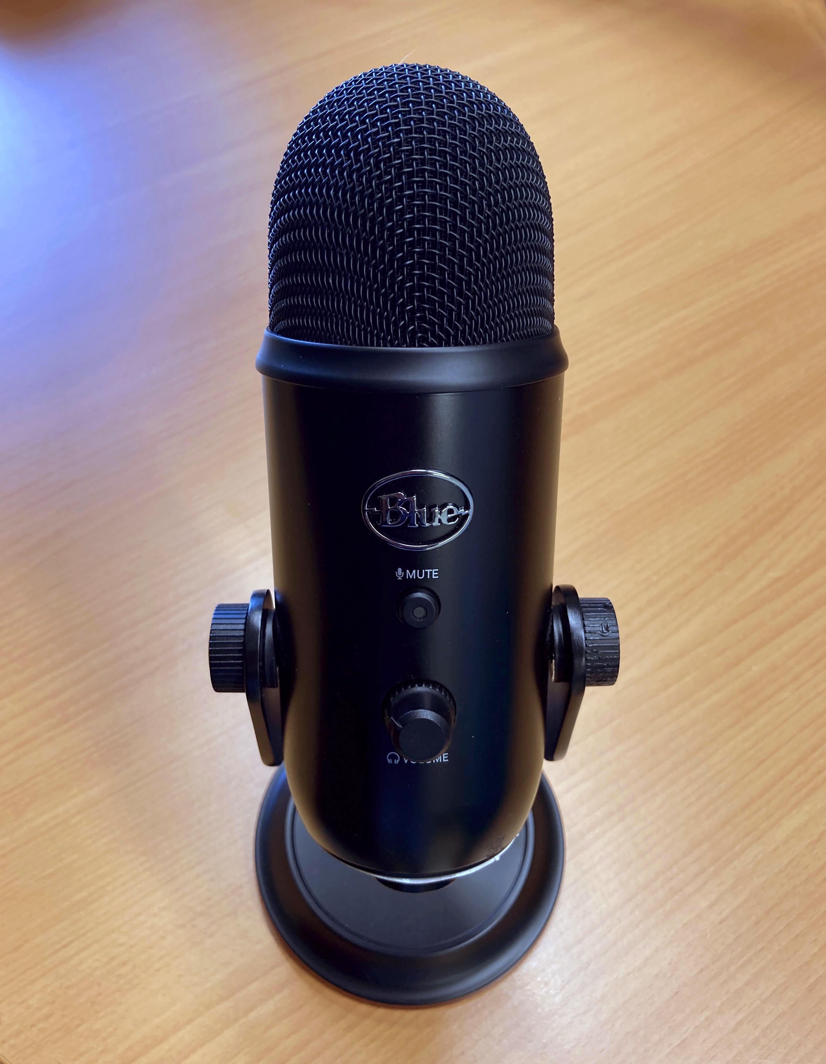 Micrófono Logitech Blue Yeti que tiene partido el conector USB. El núcleo central del conector ha quedado en el cable de conexión, por lo que se tendrá que desechar también.